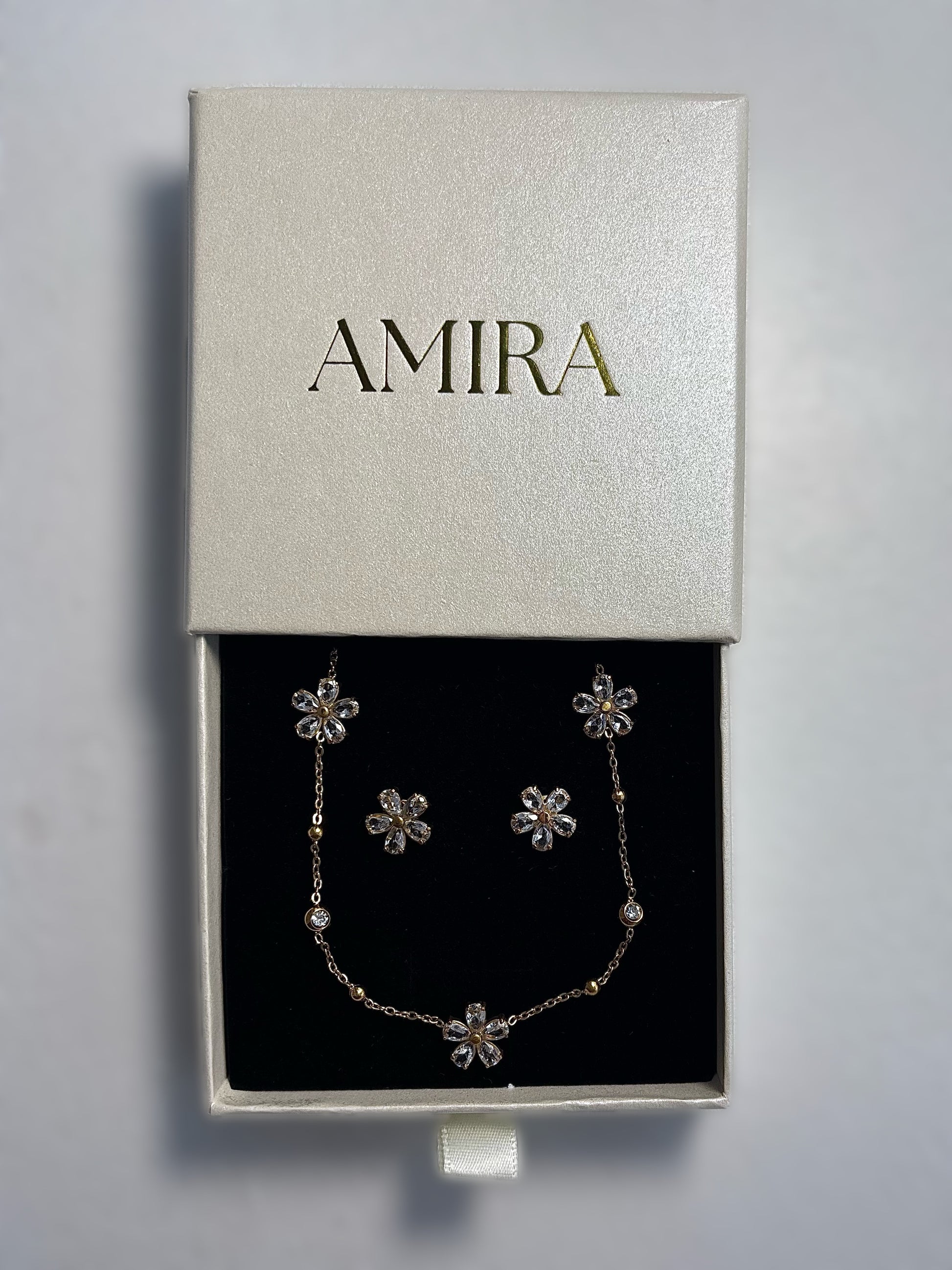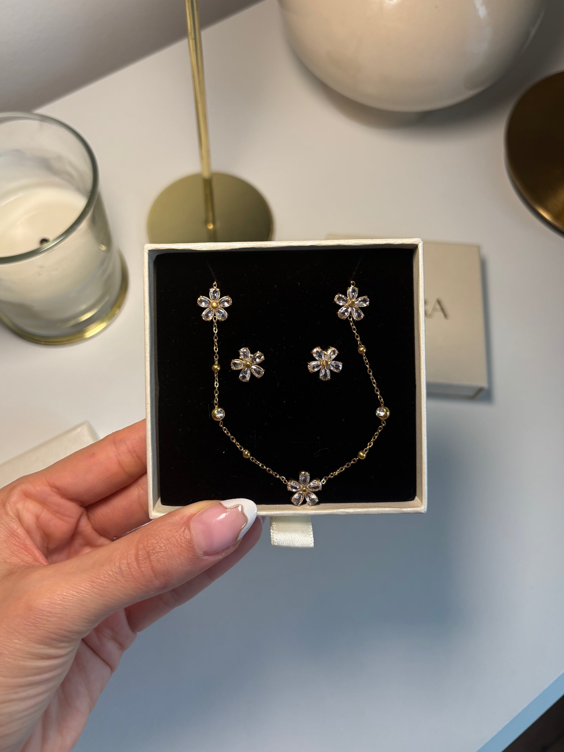 Parure collier et boucles d'oreilles en acier inoxydable, résistants à l’eau et au ternissement, conçus pour durer.