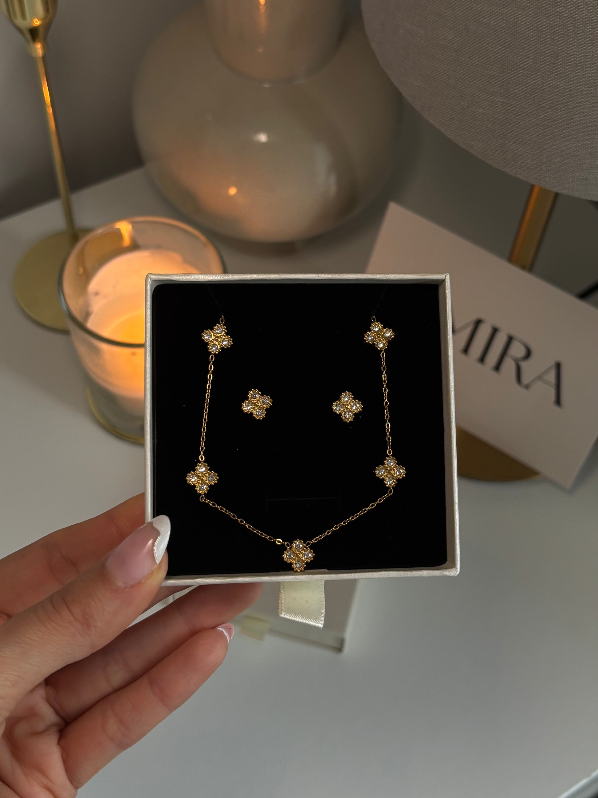 Parure collier et boucles d'oreilles en acier inoxydable, résistants à l’eau et au ternissement, conçus pour durer.