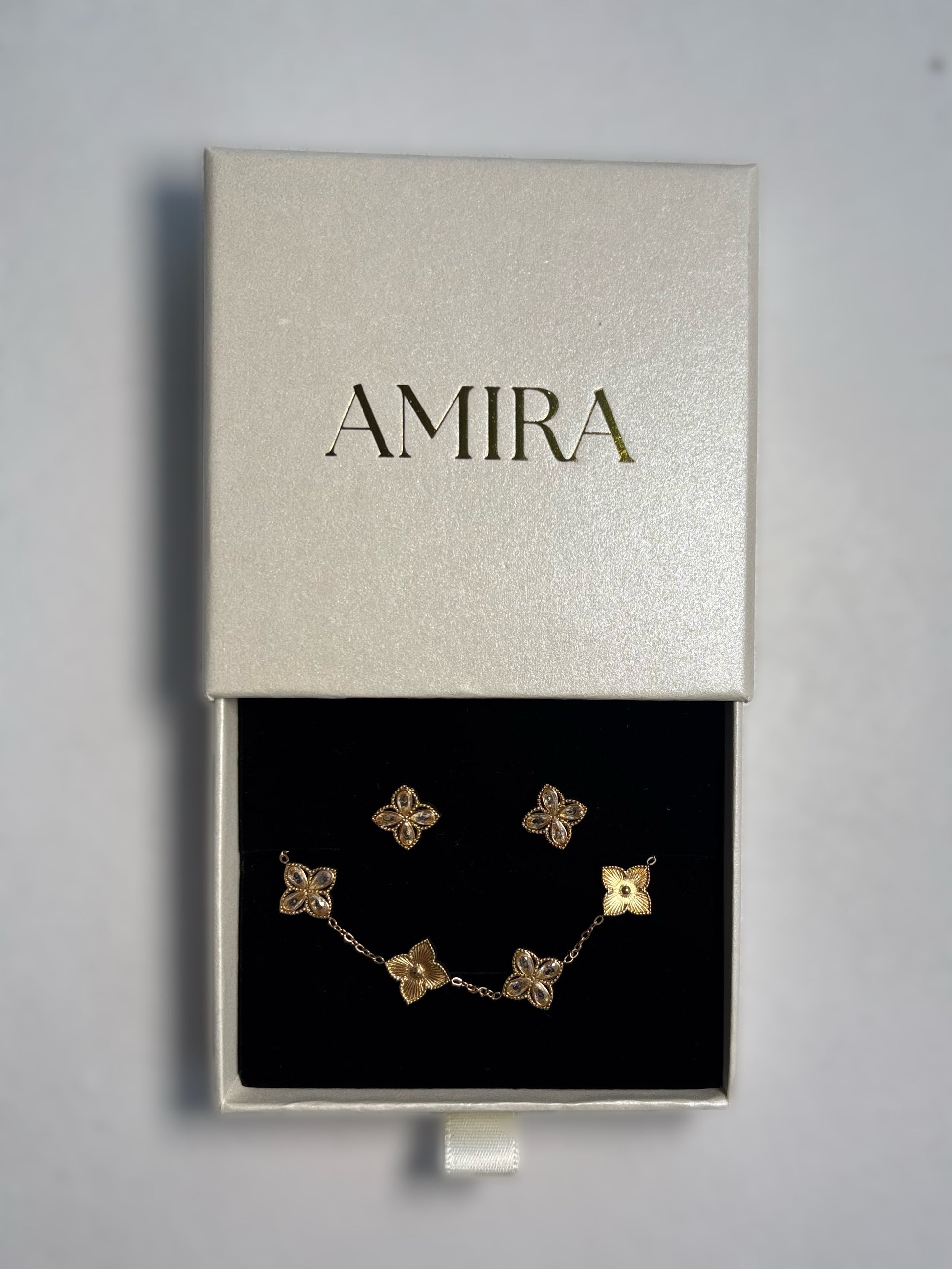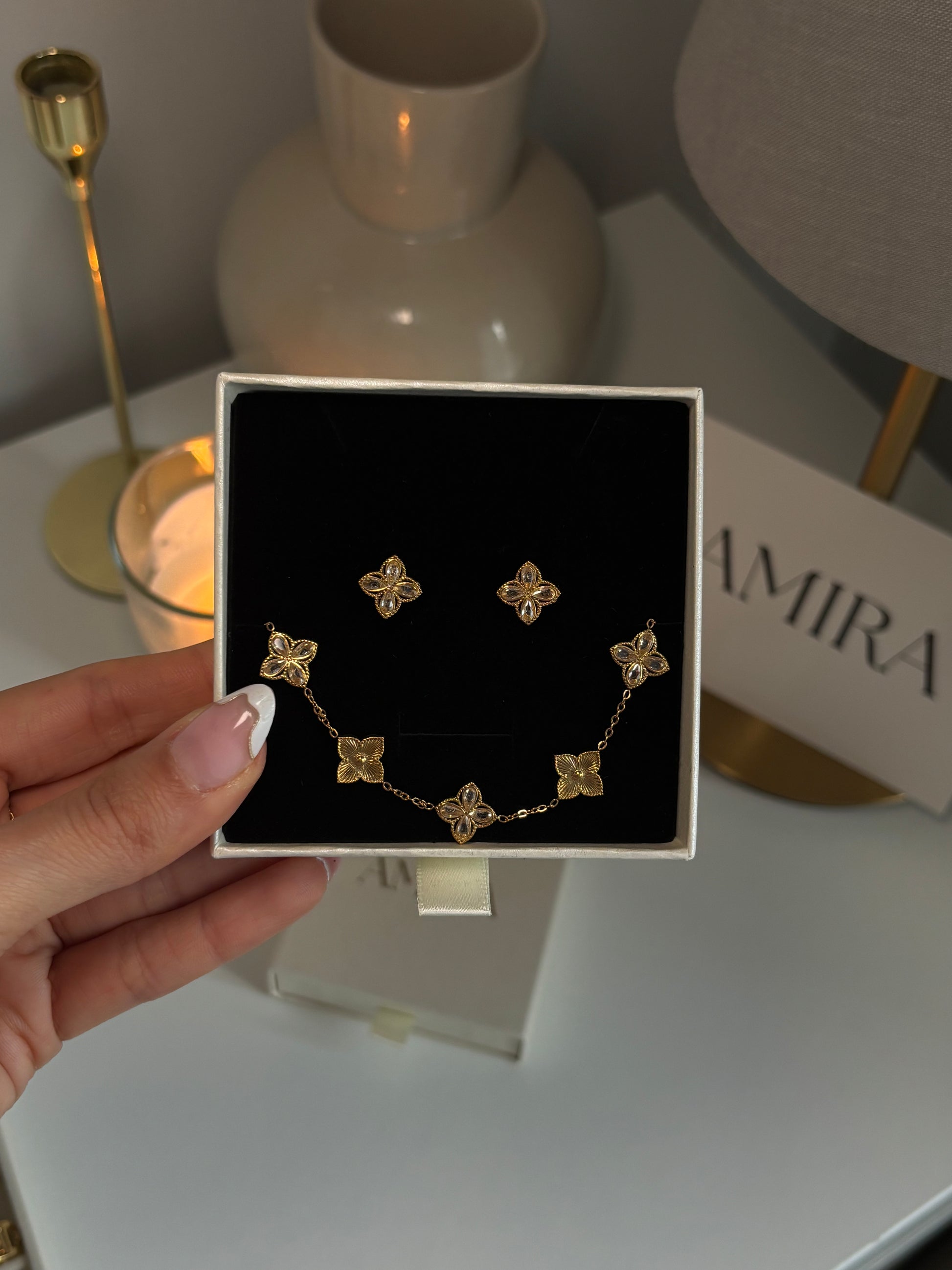 Parure bracelet et boucles d'oreilles en acier inoxydable, résistants à l’eau et au ternissement, conçus pour durer.